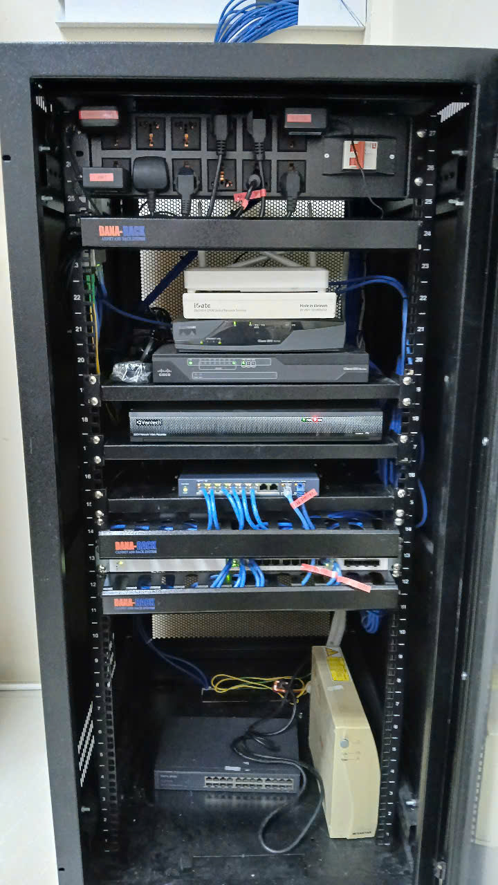 Tủ server có hệ thống quạt làm mát và thường được đặt ở nơi khô ráo thoáng mát, có máy lạnh, máy hút ẩm nên các thiết bị luôn được hoạt ổn định.